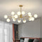 The Alabaster Globe Branch Chandelier by severnlighting features alabaster globes with natural veining set on a sleek brass branch frame. Its soft glow and modern design bring refined elegance to dining rooms, living areas, or contemporary interiors.