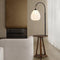 Expertly combining functionality with elegance, the Arc Side Table Floor Lamp elevates your living space. Crafted from sustainable and resilient rubberwood, the base and table showcase its warm, organic texture. The sleek black metal arm gracefully curves from the stylish round table, culminating in a classic teardrop-shaped fabric shade that diffuses a bright light, perfect for reading or relaxing.